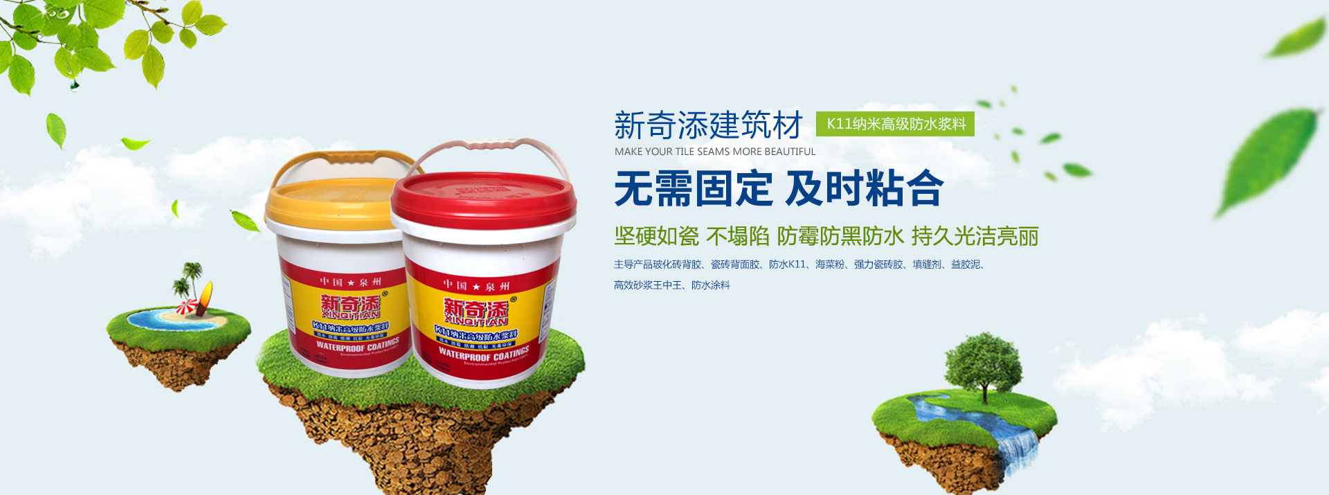 泉州市新奇添建筑材料有限公司成立于2010年,注冊資金500萬元,是一家專業從事高端防水材料、新型墻體材料、建筑材料設備的研發(fā)、生產和銷售的新興高科技企業。公司人員組成,以高、中級專業人才為主體。其高科技含量達國內外同行業先進水平,在所涉領域具備強大的科技優(yōu)勢與核心競爭力。公司憑借強大的研發(fā)能力和成熟的高科技產品,在綠色環(huán)保建材領域異軍突起。